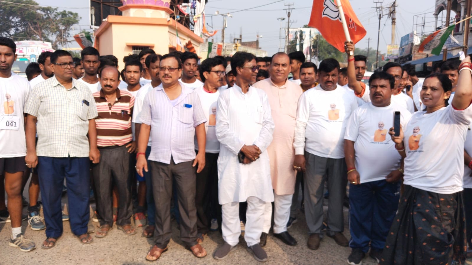 মালদা:——–—আজ ৩০ শে মে ২০২৩ মঙ্গলবার মাননীয় প্রধানমন্ত্রী নরেন্দ্র মোদীর সরকারের নয় বছর পূর্তি উপলক্ষে ম্যারাথর দৌড় প্রতিযোগিতা অনুষ্ঠিত হলো মঙ্গলবার সকালে।এদিন সকালে আইহো বাস স্ট্যান্ড থেকে বুলবুলচন্ডি হাসপাতাল মোড় চার কিলোমিটার ম্যারাথন দৌড়ের আয়োজন করে ভরতীয় জনতা পার্টীর তরফে। ৯৮জন যুবক ম্যাড়াথন দৌড়ে নাম দিয়ে ছিলো।এদিন উপস্থিত ছিলেন উত্তর মালদা সাংসদ খগেন মুর্মু, মালদা বিধানসভা বিধায়ক গোপাল চন্দ্র সাহা, হবিবপুর ব্লক কনভেনার অর্জুন হালদার,বিভিন্ন মন্ডের সভাপতি সহ বিজেপির কর্মী সমর্থকরা। এদিন উত্তর মালদা সাংসদ খগেন মূমূ বলেন এই মাননীয় প্রধানমন্ত্রী নরেন্দ্র মোদীর সরকারের নয় বছর পূর্তি উপলক্ষে ৩০ শে মে থেকে শুরু হলে এই ম্যাড়াথন দৌড় চলবে আগামী ৩০জুন পর্যন্ত এদিন দৌড়ে শেষে প্রথম, দ্বিতীয়, তৃতীয় হাতে পুরস্কার তুলে দেওয়া হয়।
