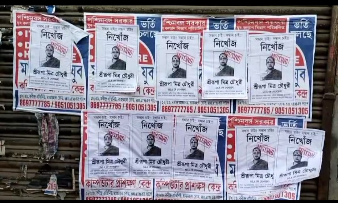 ইংলিশবাজার বিধানসভা কেন্দ্রের বিজেপি বিধায়ক শ্রীরূপা মিত্র চৌধুরী নিখোঁজ। নিখোঁজ ও সন্ধান চাই এমনই পোস্টার ঘিরে শোরগোল মালদায়। আজ সকালে মালদা শহরের ফোয়ারা মোড় মালদা হসপিটাল গেট সহ একাধিক জায়গায় শ্রীরুপা মিত্র চৌধুরী নিখোঁজ এই পোস্টার সামনে আসে। সেখানে ইংলিশ বাজারের বিজেপি বিধায়ক তথা দক্ষিণ মালদা কেন্দ্রের প্রার্থী শ্রীরুপা মিত্র চৌধুরীর ছবি দিয়ে বড় বড় অক্ষরে লেখা রয়েছে MLA কে দেখেছেন ? কোন সহৃদয়বান ব্যক্তি সন্ধান পাইলে মালদার জনগণের সাথে যোগাযোগ করার জন্য বিশেষভাবে অনুরোধ করা হচ্ছে। তবে কে বা কারা এই পোস্টার লাগিয়েছে কোথা থেকে এল তা এখনো জানা যায়নি।