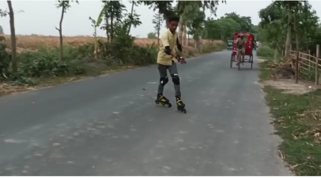 একবিংশ শতাব্দীতে এসে কোথায় যেন হারিয়ে গেছে খেলাধুলো । খেলাধুলা থেকে যেন এক পর্যায়ে উবে গেছে ধুলোর অস্তিত্ব । মুঠো ফোনে দু–চোখ গেঁড়ে ব্যস্ত হয়ে পয়েছে শিশু কিশোর থেকে প্রাপ্ত বয়স্করাও । শিরদাঁড়া বাঁকিয়ে বহুজাতিক সংস্থাগুলোর গেম জগতের কাঠপুতুলে পরিনত হয়েছে নতুন প্রজন্ম । রমরমিয়ে মোবাইল গেমের আড়ালে চলছে জুয়ার আসর । নিত্যদিন ব্যাঙ্গের ছাতার মতো গজিয়ে উঠেছে নতুন নতুন ভিডিও গেম । আর বসে বসে এই সকল গেম খেলে এক প্রকার অলস হয়ে উঠেছে যুবক, যুবতীরা । এই সবের মধ্যেই ধীরে ধীরে মাথা চাড়া দিয়ে উঠেছে একটু ভিন্ন স্বাদের খেলা । ধীরে ধীরে জনপ্রিয় হয়ে উঠছে রোলার স্কেটিং । জুতোর নিচে চাকা জড়ানো এই স্কেটে চড়ে যেমন পাওয়া যাচ্ছে ডানা ছাড়াও উড়বার আস্বাদ তেমনি কোনো কোনো স্কেটার বেশ নাম কুড়াচ্ছে সামাজিক মাধ্যমে । ফলে মুঠোফোনের বন্দি দশা থেকে মুক্তি ও নতুনত্বের ছোয়ায় মেতে উঠছে যুব সমাজ । অন্যদিকে শারিরচর্চাও হয়ে যাচ্ছে খানিকটা , ফলে এইদিকে ঝুঁকে পড়ছে কিশোর কিশোরীরা । বতমানের কথার ক্যামেরায় ধরা পড়লো এমনি এক স্কেটার । হেমতাবাদ থানার রনহট্টের সতেরো বছরের যুবক কোয়েশ রেজা স্কেটিং–এ বেশ পরিপক্ক হয়ে উঠেছে । ঘরে বসে গেম খেলার বদলে বাইরের খেলাধুলাকে প্রাধান্য দিতে চায় কোয়াশ