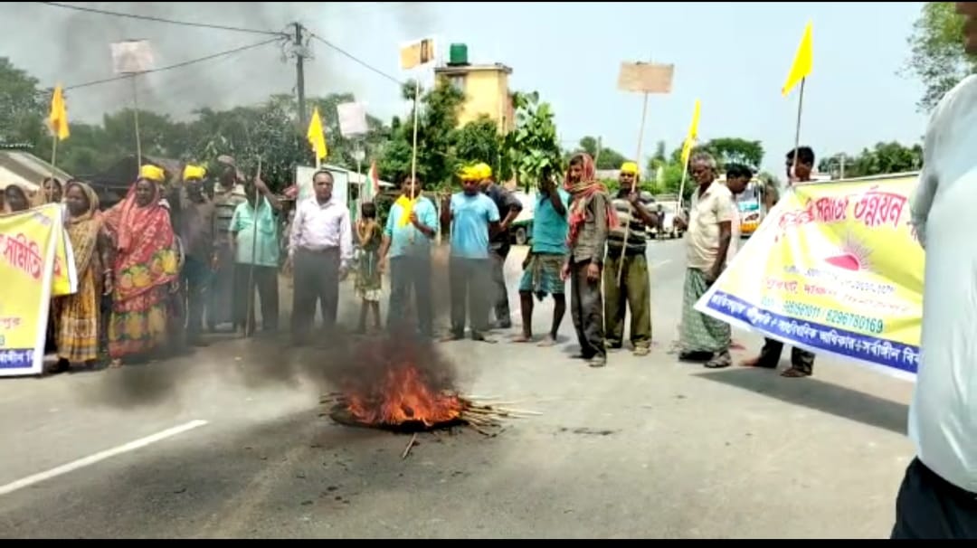 বালুরঘাট , ১৮ মে:—— কুড়মি সমাজ নিয়ে বিরূপ মন্তব্য করায় রাজ্যসড়ক অবরোধ করে বিক্ষোভ দক্ষিণ দিনাজপুরে। চলল দিলীপ ঘোষের কুশপুত্তলিকা দাহও। বৃহস্পতিবার এই ঘটনাকে ঘিরে তুমুল উত্তেজনা ছড়ায় পতিরামের খাপুর এলাকায়। সম্প্রতি কুড়মি সম্প্রদায়ের মানুষদের উদ্দেশ্য বিরূপ প্রতিক্রিয়া দেন সাংসদ তথা বিজেপির সর্বভারতীয় সহ-সভাপতি দিলীপ ঘোষ। যে বির্তকিত মন্তব্যকে ঘিরে উত্তেজিত হয়ে ওঠে কুড়মিরা । এদিন যার প্রতিবাদে দক্ষিণ দিনাজপুর জেলার বালুরঘাট ব্লকের খাঁপুর এলাকায় রাজ্য সড়ক অবরোধ করে বিক্ষোভ দেখান কুড়মি সম্প্রদায়ের মানুষরা৷ রাস্তার উপর টায়ার জ্বালিয়ে পথ অবরোধ করে বিক্ষোভ দেখাতে থাকেন শতাধিক কুড়মি সম্প্রদায়ের মানুষরা। যে পথ অবরোধের জেরে কার্যত অবরুদ্ধ হয়ে পড়ে পতিরাম ত্রিমোহিনী রুটের গাড়ি চলাচল৷ ঘটনার খবর পেয়েই এলাকায় ছুটে আসে পতিরাম থানার পুলিশ। পরে বিক্ষোভকারীরা দিলীপ ঘোষের কুশপুত্তলিকাও দাহ করে৷ বিক্ষোভকারীদের দাবি, এই ঘটনা নিয়ে দিলীপ ঘোষকে অবিলম্বে ক্ষমা চাইতে হবে। তা না হলে আগামী দিনে আরও বড়সড় আন্দোলনে নামবেন৷ যদিও পরে পুলিশি হস্তক্ষেপে স্বাভাবিক হয়েছে পরিস্থিতি। উঠে যায় অবরোধ। শুরু হয় যান চলাচল।