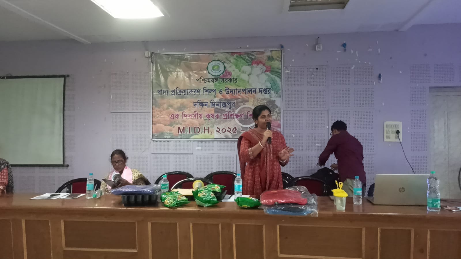 পশ্চিমবঙ্গ সরকারের সহযোগিতায় খাদ্য প্রক্রিয়াকরণ শিল্প ও উদ্যান পালন দপ্তরের পক্ষ থেকে ৫০ জন কৃষকদের নিয়ে এক দিবসীয় কৃষক প্রশিক্ষণ শিবির দেওয়া হলো বংশীহারী টাঙ্গন সভাকক্ষে।রসায়নিক স্যার ছাড়াই জৈব স্যার, নিম খৈল ব্যবহার করে বিভিন্ন রকম সবজি চাষ করা সম্ভব। এই পদ্ধতিতে চাষিরা সবজি চাষ করলে চাষিদের খরচে ভালো সব্জির ফলন হবে ও লাভবান হবে এই প্রক্রিয়ার মাধ্যমে। বংশীহারী ব্লকের ৪ টি অঞ্চল থেকে ৫০ জন চাষিদের নিয়ে বংশীহারী ব্লকের টাঙ্গন সভাকক্ষে একটি দিবসীয় কৃষিক প্রশিক্ষণ শিবির দেওয়া হয়। এই ট্রেনিংয়ে বলা হয় কি ভাবে অসময়ে সবজি চাষ করা সম্ভব। এছাড়াও রাসায়নিক স্যার ব্যবহার না করে জৈব স্যার ব্যবহার করে কি ভাবে ভালো সবজি চাষ করা যাবে এই বিষয়ে বিস্তারিত আলোচনা করা হয় ট্রেনিংয়ে। দেখা যায় সবজি চাষে সবজিতে পোকা লেগে যাওয়ার কারণে সবজির ভালো ফলন হয় না, সেই কারণে নিম খৈল পোকা মারা আঠালো ফাদ ব্যবহার করার পরামর্শ দেওয়া হয় এই ট্রেনিং থেকে। কোন পদ্ধতিতে সবজি চাষ করলে সবজিতে পোকা লাগবে না এই বিষয়ে বিস্তারিত আলোচনা করা হয়। এছাড়া ট্রেনিং প্রশিক্ষণে উপস্থিত থাকা চাষিদের দেওয়া হয় উদ্যান পালন বিষয়ক ২টি বই সহ সবজি চাষ করার সামগ্রী। এই প্রশিক্ষণ প্রদ্মতিতে সবজি চাষ করলে চাষিরা অসময়ে সবজি চাষ করে বেশি লাভবান হতে পারবে বলে দাবি করেছেন উদ্যান পালন বিভাগের আধিকারিকরা। এদিনের এই ট্রেনিং প্রশিক্ষণে উপস্থিত দক্ষিণ দিনাজপুর ড্রিস্ট্রিক সেক্রেটারি রাজীব দাস, বংশীহারী ব্লকের বিডিও সুব্রত বল, পঞ্চায়েত সমিতির সভাপতি গণেশ প্রসাদ সহ ৫০ জন মহিলা কৃষক উপস্থিত ছিলেন।