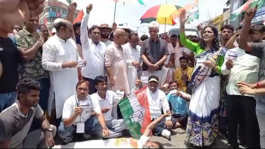 মালদা:—–——- ছাপ্পা ভোট সন্ত্রাস ভোট লুটের প্রতিবাদে জেলা জাতীয় কংগ্রেসের তরফ থেকে মালদা শহরের রথবাড়ি মোড়ে পথ অবরধ নেতৃত্বে পথ অবরোধ।