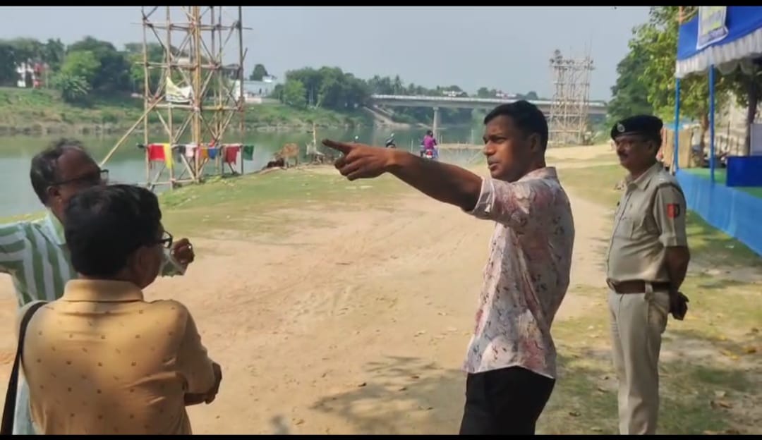 বালুরঘাট, ২৬ অক্টোবর –—-রাত পোহালেই ছটপুজো। সূর্য উপাসনার এই মহোৎসবকে কেন্দ্র করে বালুরঘাটের আত্রেয়ী নদীর ঘাটে ইতিমধ্যেই প্রস্তুতির চূড়ান্ত পর্ব শুরু। রবিবার সদরঘাট পরিদর্শনে যান ডিএসপি সদর বিক্রম প্রসাদ। তিনি ঘাটের নিরাপত্তা ব্যবস্থা ও পুণ্যার্থীদের সুবিধার বিষয়টি খতিয়ে দেখে জানান, এ বছর নদীতে জল কিছুটা বেশি থাকায় বাড়তি সতর্কতা নেওয়া হচ্ছে।