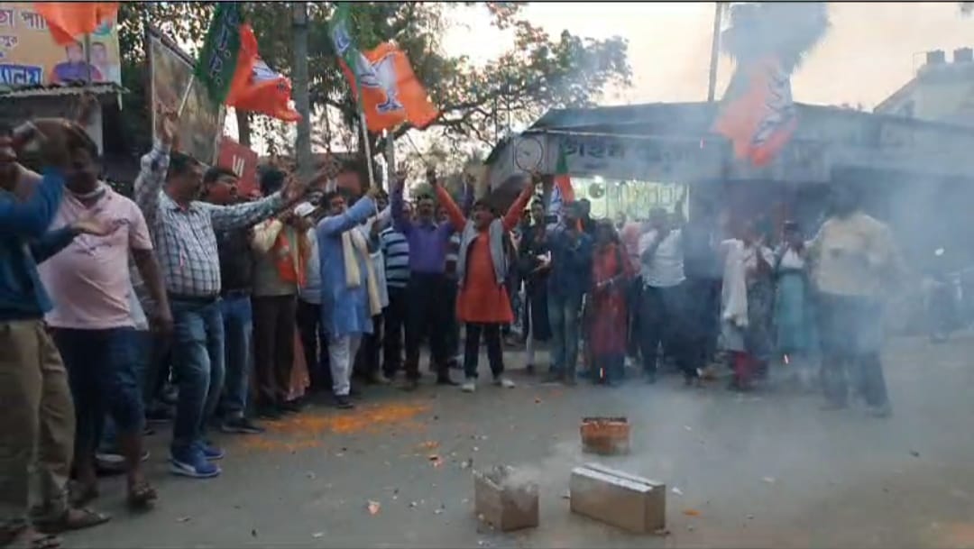 বালুরঘাট, ৩ ডিসেম্বর ——-—– তিন রাজ্যে বিজেপির অভাবনীয় সফলতায় বালুরঘাটের বোল্লা কালী মন্দিরে পুজো দিলেন বিজেপির রাজ্য সভাপতি সুকান্ত মজুমদার। ডাক দিলেন পশ্চিমবঙ্গ থেকে তৃণমূল কে উৎখাতেরও। রবিবার বিকেলে দক্ষিণ দিনাজপুর জেলা বিজেপির সভাপতি স্বরুপ চৌধুরী কে সঙ্গে নিয়ে গিয়ে দলের শুভ কামনা করে বোল্লা রক্ষাকালী মন্দিরে পুজো দেন। এরপরে বালুরঘাটে বিজেপির দলীয় কার্যালয়ে নিজে উপস্থিত হয়ে নেতা কর্মীদের সাথে বিজয় উল্লাসে মাতেন সুকান্ত মজুমদার। এদিন জেলা বিজেপি কার্যালয় থেকে বেরিয়ে নেতা কর্মীদের গালে গেরুয়া আবীর মাখিয়ে ও লাড্ডু খাইয়ে তিন রাজ্যে জেতার আনন্দ প্রকাশ করেন বিজেপির রাজ্য সভাপতি। যেখানে উপস্থিত ছিলেন দক্ষিণ দিনাজপুর জেলার প্রায় সমস্ত বিজেপি নেতৃত্বরা। এদিন শহরের কোর্ট মোড় এলাকায় বাজি ফাটিয়ে ও বাজনার তালে নাচতেও দেখা গেছে বিজেপি নেতা কর্মীদের।
