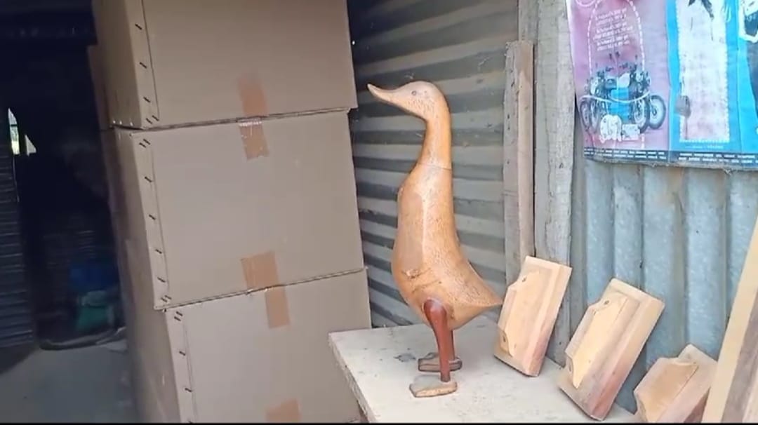 বালুরঘাট, ১৩ মে:—-— দক্ষিণ দিনাজপুরের শিল্পসত্ত্বা এবারে রাজ্য ও দেশ ছাড়িয়ে পাড়ি দিচ্ছে বিদেশেও। সোশ্যাল মাধ্যমে কাজের সুযোগ পেয়েই দিনরাত এককরে পাইন কাঠের হাঁস তৈরি হচ্ছে জেলার প্রান্তিক শহরে। আর যার ফলে ক্রমশ স্বাবলম্বী হয়ে উঠছেন বালুরঘাটের মহিলারা। শহর থেকে কয়েক কিলোমিটার দূরে চকভৃগু গ্রাম পঞ্চায়েতের অন্তর্গত নলতাহার গ্রামে এই সুদৃশ্য হাঁস তৈরি হচ্ছে বেশকিছুদিন ধরেই। পাইন গাছের নানা টুকরো নবান সরকার ও তার ছেলে বিপ্লব সরকারের হাতের কায়দায় রুপ পাচ্ছে কাঠের হাঁসে। কলকাতা থেকে পাওয়া দুহাজার টি কাঠের হাঁস তৈরির বরাত পেয়ে ইতিমধ্যেই স্থানীয় মহিলারা নিযুক্ত হয়েছেন এই অর্থ উপার্জনে। আর যার ফলে কিছুটা হাসি ফুটেছে গ্রামের মহিলাদের মুখেও।