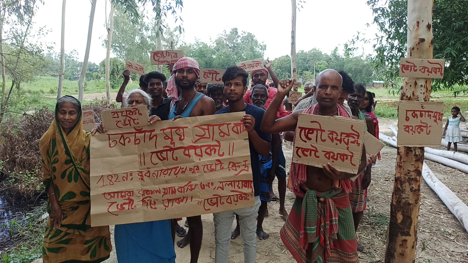 উল্লেখ্য গত বছর পঞ্চায়েত ভোট দিতে গিয়ে বিভিন্ন সমস্যার মধ্যে পড়তে হয়েছে চক চাদ মুখ এলাকার বাসিন্দাদের। গ্রামবাসীদের অভিযোগ দীর্ঘ ১৫ কিলোমিটার দূরে গিয়ে ভোট দিতে হয় এলাহাবাদ অঞ্চলের বরখোর বুথে। নিজেদের ভোট নিজেরাই দিতে পারেনি এই গ্রামের বাসিন্দারা বলে অভিযোগ। অন্য কোথাও ভোট দিলে খেতে হয়েছে বেধড়ক মারধর। কাগজ কলমে এখনো বুনিয়াদপুর পৌরসভার ভোটার তারা বলে অভিযোগ গ্রামবাসীদের। চক চাঁদ মুখ এলাকায় ST , SC সম্প্রদায়ের প্রায় ৩৫ টি পরিবারের শতাধিক ভোটার রয়েছে। ২০১৭ পৌরসভা পৌরসভা গঠন হবার ২০১৯ লোকসভা ও ২০২১ সালে বিধানসভা ভোট দিয়েছেন নারায়নপুর বুথ থেকে গ্রামের বাসিন্দারা ভোট দিয়েছেন নারায়নপুর স্কুলে। এখাধিকবার লিখিত ভাবে বিভিন্ন সরকারি দপ্তরে অভিযোগ জানানোর পরেও মেলেনি কোন সুরাহা। ক্ষিপ্ত গ্রামবাসীদের অভিযোগ বাড়ির পাশে ব্রজবল্লবপুর গ্রাম পঞ্চায়েতের লক্ষীপুর বুথে ভোট দেওয়ার বেবস্থা করুক। জীবনের ঝুকি নিয়ে গ্রামবাসীরা ভোট দিতে যেতে নারাজ। বাধ্য হয়ে ভোট বয়কটের ডাক বোর্ড যুলিয়ে রয়েছে।