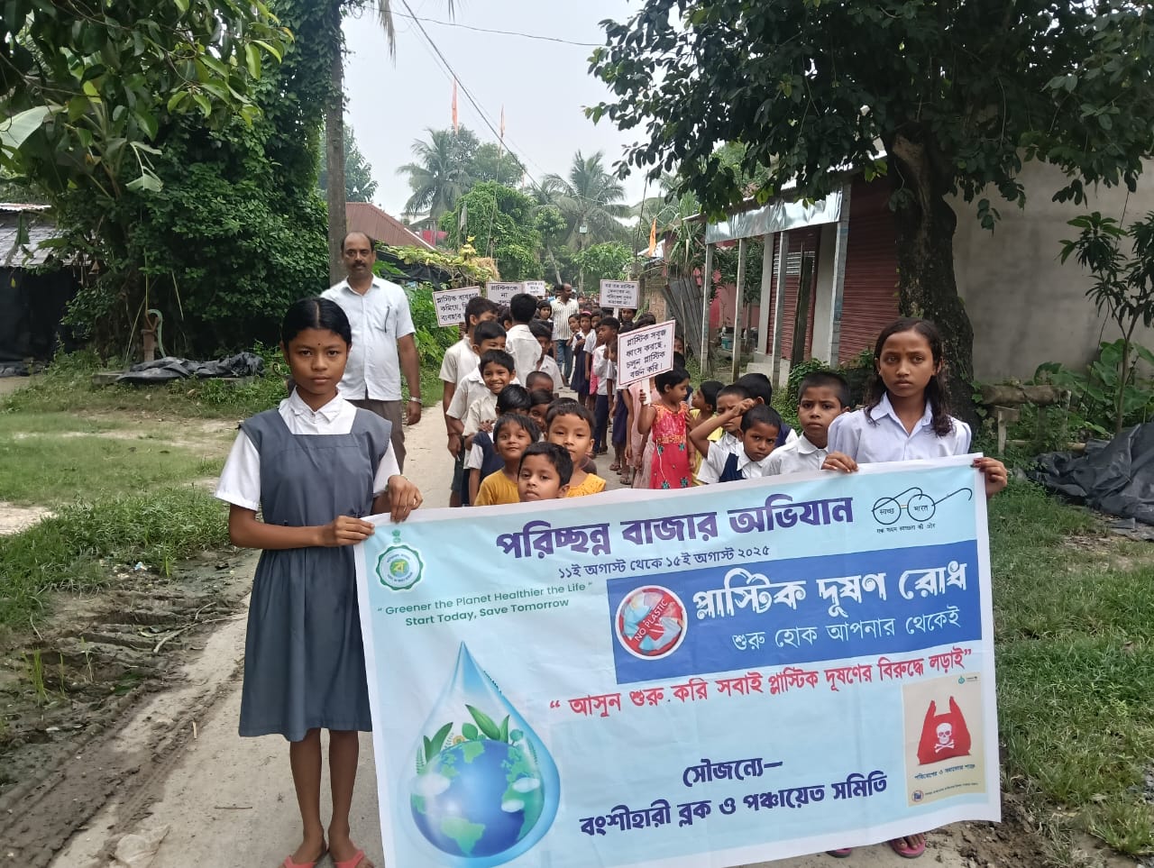 প্লাস্টিক দূষণের বিরুদ্ধে লড়াই একটি গুরুত্বপূর্ণ বৈশ্বিক সমস্যা। এর সমাধানে ব্যক্তি, সমাজ ও সরকার সকলে মিলে কাজ করতে হবে। প্লাস্টিক বর্জ্য কমানো, পুনর্ব্যবহার করা এবং সঠিক ব্যবস্থাপনার মাধ্যমে এই দূষণ মোকাবিলা করা সম্ভব। প্লাস্টিক দূষণ রোধ করতে বংশীহারী ব্লকের পক্ষ থেকে পরিচ্ছন্ন বজায় অভিযান কর্মসূচি একাধিকবার করা হয়েছে। মঙ্গলবার বংশীহারী ব্লকের অন্তর্গত মহাবাড়ী গ্রাম পঞ্চায়েতে প্লাস্টিক দূষণ রোধ করতে ও পরিচ্ছন্ন বাজার অভিযান কর্মসূচি পালন করা হলো। এদিন জয়েন্ট বিডিওর উপস্থিতিতে মহাবাড়ী গ্রাম পঞ্চায়েতে প্লাস্টিক দূষণ রোধ করতে ও প্লাস্টিকের ব্যবহার কমিয়ে বিকল্প ব্যবস্থা গ্রহণ করতে একটি আলোচনা সভা করা হয়। পাশাপাশি প্লাস্টিকের ব্যবহার কমানোর জন্য পাথরঘাটা এলাকার দোকানদারদের মধ্যে লিফলেট বিলি করা হয়। এছাড়াও ওই এলাকার স্কুলের ছাত্র ছাত্রীদের নিয়ে পাথরঘাটা হাট খোলা থেকে শুরু করে পাথরঘাটা সুদর্শননগর উচ্চি বিদ্যালয় পর্যন্ত একটি র্যালি করা হয়। এদিনের এই কর্মসূচিতে জয়েন্ট বিডিও মানবেন্দ্র নাথ সাহা, সিবিডিসিপি র সুপার ভাইজার টারজেন আলী, ভিএসটি ও ভিসিটি সকল সদস্যরা, মহাবাড়ী গ্রাম পঞ্চায়েতের কর্মচারী বিন্দো সহ গ্রাম পঞ্চায়েতের সকল সদস্যরা উপস্থিত ছিলেন। প্লাস্টিক দূষণের বিরুদ্ধে লড়াই এক বারে না হলেও আস্তে আস্তে রোধ করা করতে হবে বলে জানিয়েছেন জয়েন্ট বিডিও মানবেন্দ্র নাথ সাহা।