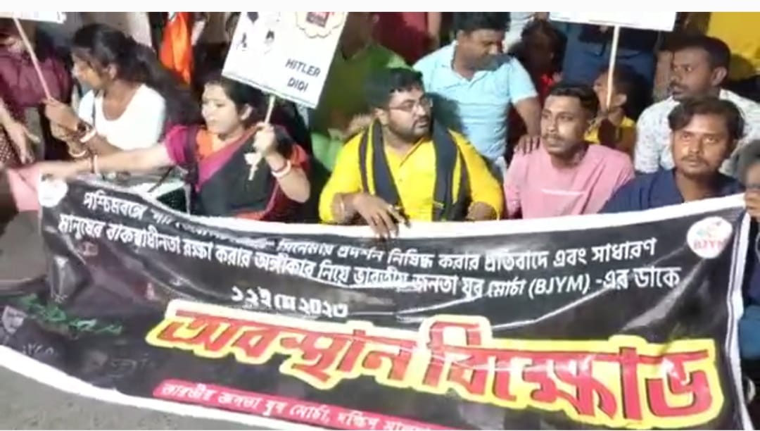 পশ্চিমবঙ্গের দা কেরোলা স্টোরি সিনেমার প্রদর্শন নিষিদ্ধ করার প্রতিবাদ এবং সাধারণ মানুষের বাক স্বাধীনতা রক্ষা করার অঙ্গীকার নিয়ে ভারতীয় যুব মোর্চার মালদা শাখার সদস্যরা