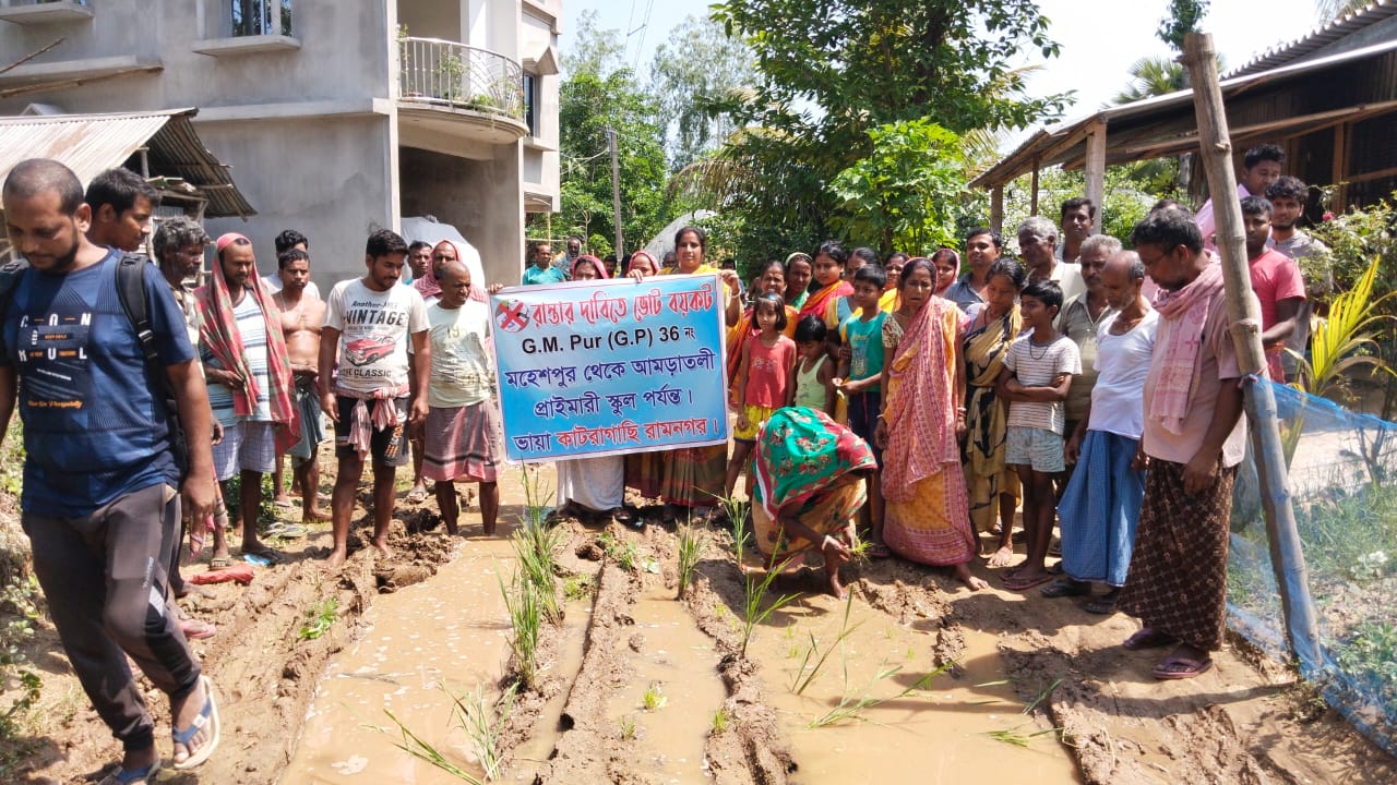 পাকা রাস্তার দাবী জানিয়ে বিক্ষোভ প্রদর্শন করলেন গ্রামবাসীর। পাশাপাশি ভোট বয়কটের হুঁশিয়ারি দেন গ্রামবাসীরা