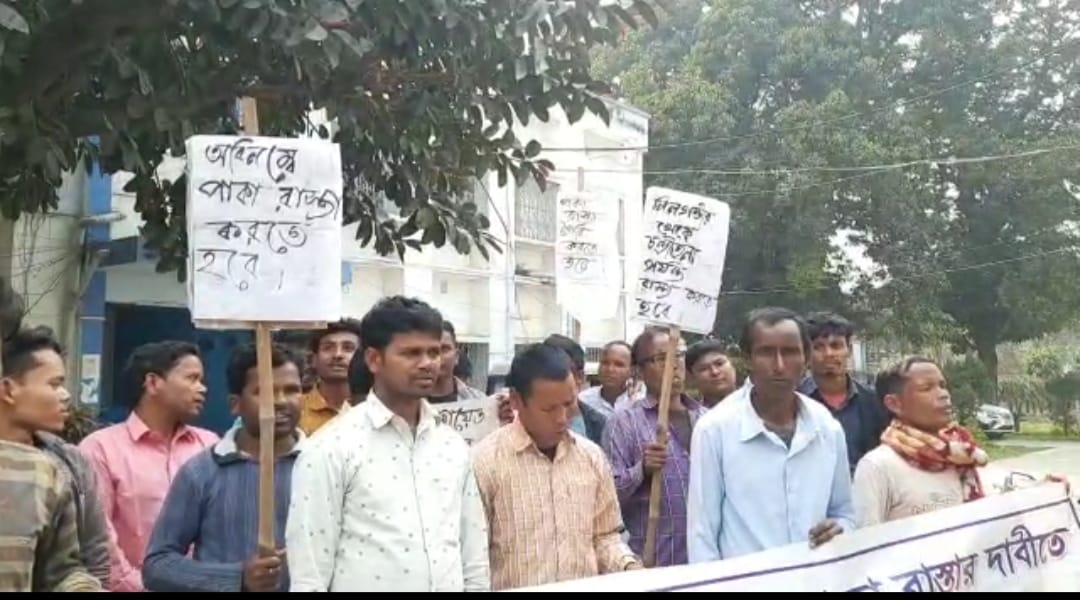 বালুরঘাট, ১ মার্চ –––রাস্তা নেই, ভোট বয়কটের হুশিয়ারি দিয়ে জেলা পরিষদ ঘেরাও বাসিন্দাদের। বুধবার এই ঘটনাকে ঘিরে তুমুল উত্তেজনা ছড়ায় দক্ষিণ দিনাজপুর জেলা পরিষদ চত্বরে। জানা গেছে, বংশীহারি ব্লকের পিছলা হইতে আঙ্গারুন পর্যন্ত রাস্তাটি দীর্ঘদিন ধরেই বেহাল অবস্থায় পড়ে। কাচা রাস্তায় চরম দুর্ভোগের মধ্যদিয়েই চলাচল করতে হয় বাসিন্দাদের। বাম থেকে ডান কোন আমলেই এর সুরাহা না হওয়ায় একপ্রকার বাধ্য হয়েই এমন আন্দোলনের পথ বেছে নিয়েছেন । এদিন এলাকার বাসিন্দারা একত্রিতভাবে প্ল্যাকার্ড হাতে নিয়ে জেলা পরিষদে ঢুকে তুমুল বিক্ষোভ দেখাতে থাকেন। যাকে ঘিরে রীতিমতো উত্তেজনাকর পরিস্থিতি তৈরি হয়। যদিও পরবর্তীতে কতৃপক্ষের আশ্বাসে স্বাভাবিক হয় পরিস্থিতি।