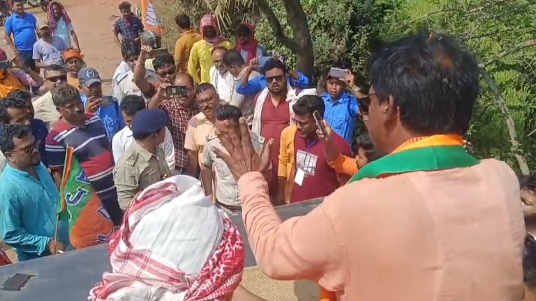 বামনগোলা ব্লকের জগদ্দলা অঞ্চলের ডোমাডাঙ্গা এলাকায় নির্বাচনী প্রচারে গিয়ে পুলিশি বাধার মুখে উত্তর মালদার বিজেপি প্রার্থী খগেন মুর্ম। পুলিশের দাবি পারমিশন ছাড়া বাইক র‍্যালি করা হচ্ছে।