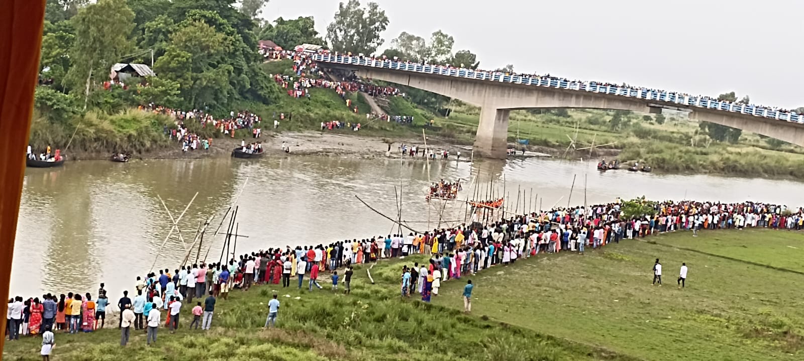 মালদা:–বিশ্বকর্মা পূজা এলেই আনন্দে মেতে ওঠেন মালদহের বামনগোলাবাসি। প্রতিবছরের মতো এবারও বামনগোলা আদিবাসীবৃন্দু ও ব্যবসায়ী সমিতির উদ্যোগে ও বামনগোলা পুলিশ প্রশাসনের সহযোগিতায় বিশ্বকর্মা পূজা উপলক্ষে নৌকা বাইচ প্রতিযোগিতা অনুষ্ঠিত হল সোমবার বিকেলে,মালদা জেলার বামনগোলা ব্লকের টাঙন নদীতে। উল্লেখ্য,প্রতিবছর নৌকা বাইচ প্রতিযোগিতা ঘিরে এলাকায় মেলা বসে। প্রতিযোগিতা শেষে বিজয়ীদের পুরস্কৃত করা হয় কমিটির পক্ষ থেকে প্রথম পুরস্কার ১৫০০০ দ্বিতীয় পুরস্কার ১২০০০ তৃতীয় পুরস্কার ৮০০০ ।এই প্রতিযোগিতা তিন ধাপে করা হয়। এদিনের অনুষ্ঠানে উপস্থিত ছিলেন বামনগোলা ব্লকে বিডিও রাজু কুন্ডু,মাতুয়া ও উদ্বাস্তু পুনর্বাসন দপ্তরের চেয়ারম্যান রঞ্জিত সরকার,রতুয়ার বিধায়ক সমর মুখার্জি,বামনগোলা থানার আইসি সহ বামনগোলা ব্যবসায়িক সমিতির সকল সদস্য সহ বিশিষ্ট ব্যক্তিবর্গ।