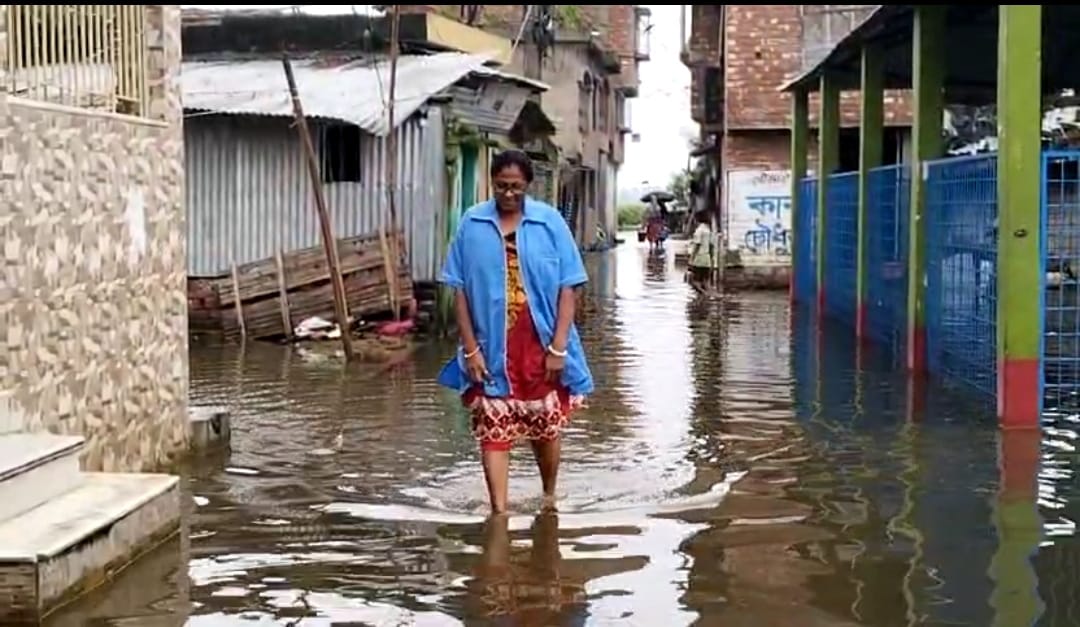 মালদা:- ———–—বৃষ্টি কমলেও এখনো জল কমে নি, ইংরেজবাজার পৌরসভার বেশ কয়েকটি ওয়ার্ডে। পুরসভার তিন নম্বর ওয়ার্ড ২৩ নম্বর ওয়ার্ড ২৫ নম্বর ওয়ার্ডেএখনো জমে রয়েছে বৃষ্টির জল। জলমগ্ন আইসিডিএস সেন্টার। ইংরেজবাজার পৌরসভার তিন নম্বর ওয়ার্ডের নেতাজি কলোনি এলাকায়, জল জমে যাওয়া য় কার্যত আই সি ডি এস সেন্টারে কাজকর্ম ব্যাহত হচ্ছে। কবে এই জল বেরোবে তাও সঠিকভাবে বলতে পারছেন না স্থানীয় বাসিন্দা থেকে শুরু করে পুরসভা কর্তৃপক্ষ। এই পরিস্থিতিতে পৃথকভাবে খাল কেটে জল মহানন্দা নদীতে মিশিয়ে দিয়ে সেই জল নামানোর চেষ্টা করছি ইংরেজবাজার পৌরসভা দাবি করেন চেয়ারম্যান কৃষ্ণেন্দু নারায়ন চৌধুরী। আর এই নিয়ে কটাক্ষ করেছেন ইংরেজ ভাইয়ের পৌরসভার বিরোধী দলনেতা বিজেপি কাউন্সিলর অম্লান ভাদুরি