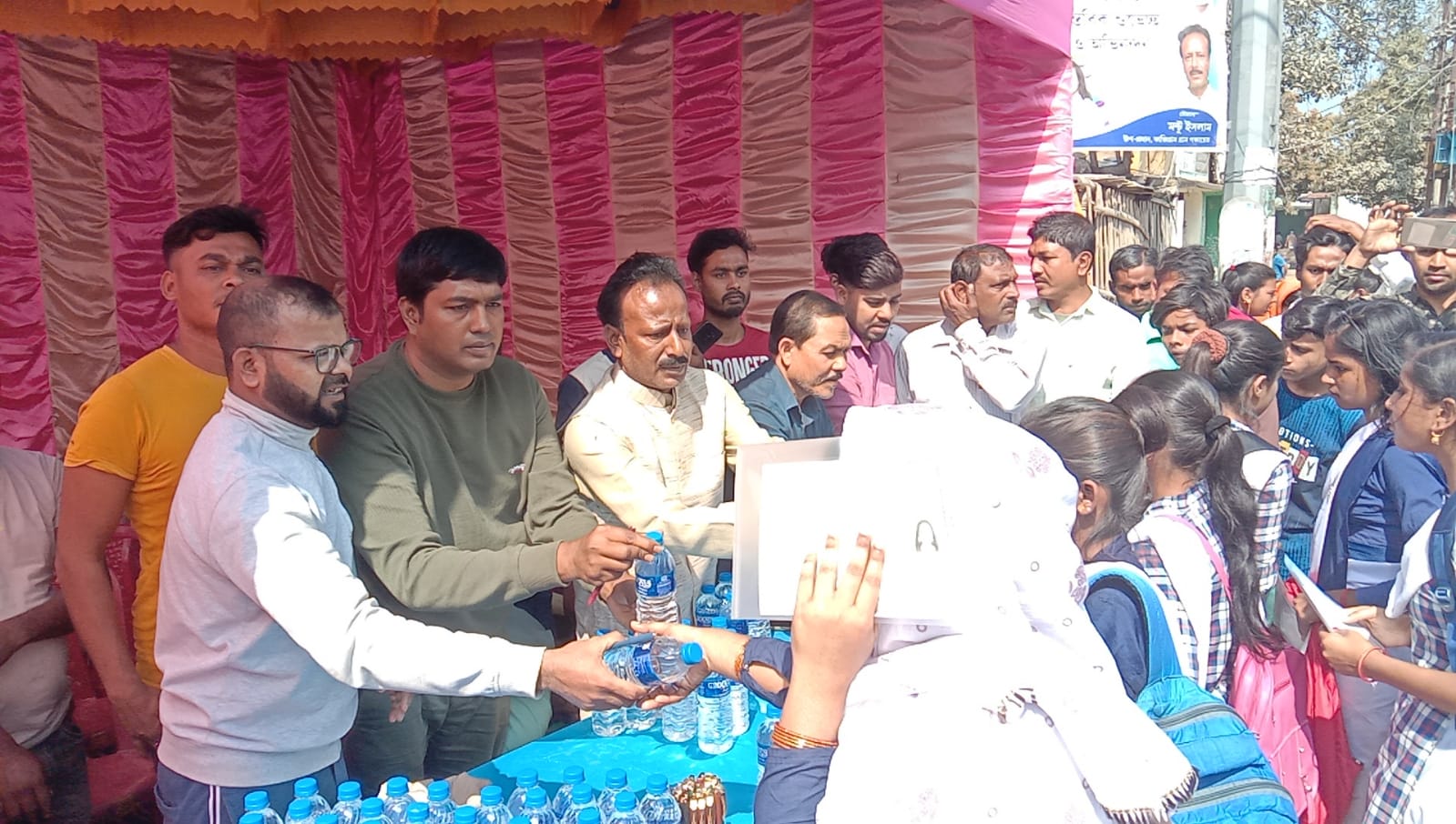 মালদা: বৃহস্পতিবার থেকে শুরু হল এবছরের মাধ্যমিক পরীক্ষা। এই বছর জেলায় মোট পরীক্ষার্থীর সংখ্যা ৩৯৪৩৯। মোট পরীক্ষা কেন্দ্র ১৩৩টি। সুষ্ঠুভাবে মাধ্যমিক পরীক্ষা শেষ করতে তৎপর জেলা পুলিশ প্রশাসন। ঠিক সেই রকমই ময়দানে নেমেছেন বিভিন্ন রাজনৈতিক দলের প্রতিনিধিরাও। জীবনের সবচেয়ে বড় পরীক্ষায় বস্তে চলেছেন ছাত্র-ছাত্রীরা। তাই তাদের শুভকামনা এবং পরীক্ষার্থীদের হাতে পেন ও পানীয় জল তুলে দেওয়ার ব্যবস্থা করা হল। বৃহস্পতিবার সকালে ইংলিশবাজারের চন্ডিপুর এলাকায় সহায়তা কেন্দ্র করে পরীক্ষার্থীদের হাতে পেন এবং পানীয় জল তুলে দেন কাজী গ্রাম অঞ্চলের তৃণমূলের উপপ্রধান মন্টু ইসলাম। জানা যায় চন্ডিপুর উচ্চ বিদ্যালয়