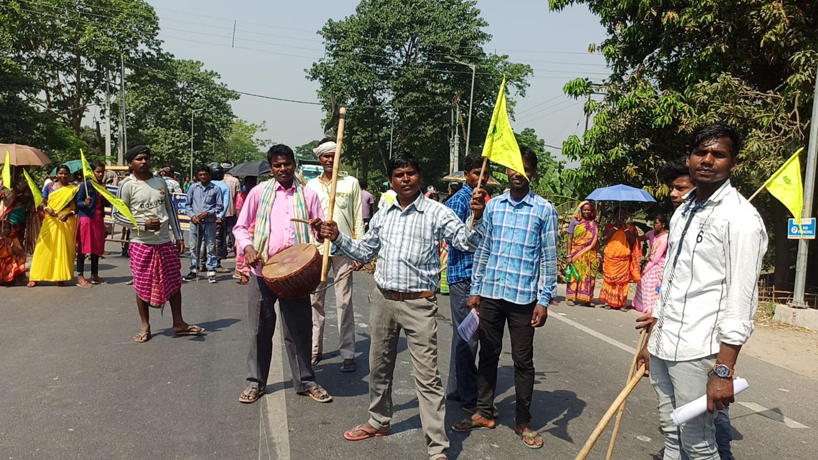 মালদা:— মালদা জেলা কমিটি,এদিন পাঁচ দফা দাবিতে বাংলা বন্ধ টাকা হয়।এদিন মালদা নালাগোলা রাজ্য সড়ক অবরোধ করে সকাল থেকে অবরোধ করে বিক্ষোভ দেখাতে থাকে। জেলা বিভিন্ন ব্লকের পাশাপাশি হবিবপুর ও বামনগোলা ব্লকে সকাল থেকে প্রভাব পড়েছে । উল্লেখ্য মহিলা বিরোধী, আদিবাসী বিরোধী, ন্যয় বিরোধী, ও সম্প্রতি বালুরঘাটে আদিবাসী মহিলাদের দন্ডী খাটানোর সহ বিভিন্ন প্রতিবাদ জানিয়ে ১৭ই এপ্রিল আদিবাসী সিঙ্গেল অভিযানের পক্ষ থেকে বাংলা বন্ধ। সেই পরিপ্রেক্ষিতে এদিন সকাল থেকে হবিবপুর থানার ১২ মাইল এলাকায় মালদা নালাগোলা রাজ্য সড়ক অবরোধ করে বিক্ষোভ দেখায় থাকে। এদিন সকাল থেকে আদিবাসী সিঙ্গেল অভিযানের সদস্যরা হাতে প্লে কার্ড নিয়ে ধামসা মাদল বাদী বাজিয়ে, তীর ধনুক নিয়ে পথ অবরোধ করে বিক্ষোভ দেখাতে থাকে। এখানে নেতৃত্ব দেন দিলিপ টুডু।যার যেরে সকাল থেকে মালদা নালাগোলা রাজ্য সড়কে তীব্র যানজটের সৃষ্টি হয় গাড়ি চলাচল বন্ধ হয়ে পড়ে । খবর পেয়ে ঘটনাস্থলে পৌঁছায় হবিবপুর ও বামনগোলা থানার বিশাল পুলিশবাহিনী।জরুরী পরিষেবা গাড়ি ছাড়লেও যাত্রীবাহী গাড়ি চলাচল বন্ধ আছে।