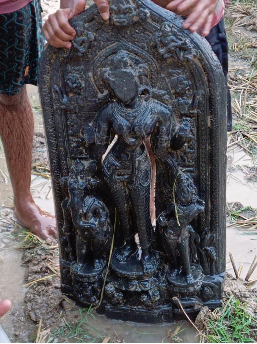 মাটি খননে পুকুর থেকে উদ্ধার প্রাচীনতম পাথরের মূর্তি