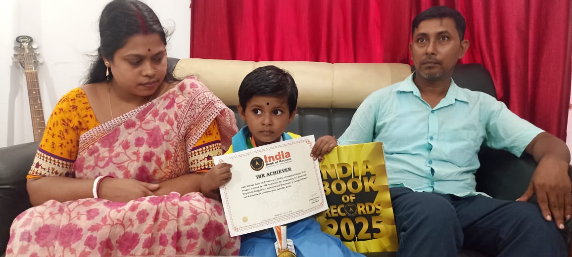 ,২০ আগস্ট, দক্ষিণ দিনাজপুর————-———-মাত্র ৩ বছর ৪ মাস বয়সে ইংরেজি থেকে বাংলায় ১২৭টি শব্দ মাত্র ৩ মিনিট ৮ সেকেন্ডে অনুবাদ করে ইন্ডিয়া বুক অফ রেকর্ডসে জায়গা করে নিল গঙ্গারামপুরের শিশু আখি বিশ্বাস। তাকে ‘আইবিআর অ্যাচিভার’ খেতাবে ভূষিত করেছে সংস্থা।