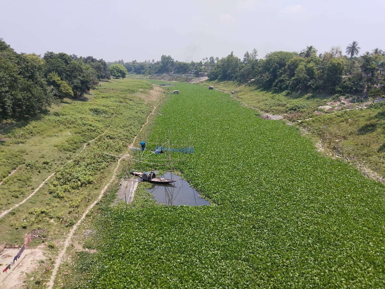 মালদাঃ শুধু তাই নয়,নদীর জলের চারিদিকে কচুরিপানায় ছেয়ে গিয়েছে।এর জন্য নদী সংলগ্ন স্থানীয় মানুষদের পদে পদে দুর্ভোগ পোহাতে হচ্ছে।তাদের স্নানের জন্য জলে নামতে খুব সমস্যা হচ্ছে।অনেকেই এখন বাধ্য হয়ে কচুরিপানা সরিয়ে জলে ডুব দিচ্ছেন জামাকাপড় ধোয়ার কাজ করছেন।এনিয়ে স্থানীয় এক মহিলা সন্ধ্যা সিংহ জানান ক্ষোভ প্রকাশ করে বলেন এলাকার নদীতে স্নান করতে এসে অসন্তোষ প্রকাশ করছেন অনেকে, ওই মহিলা অভিযোগ করে বলে,নদীর অবস্থা বেহাল রয়েছে।তবুও এই দিকে কেউ নজর দিচ্ছে না।নদীকে দ্রুত সংস্কার করা উচিত।নদীতে নেমে স্নান করার মত পরিস্থিতি নেই জল থেকে গন্ধ ছড়াচ্ছে জামা কাপড় ধুয়ে নিয়ে গিয়ে,আবার সাবমাশবলে জলে কাপড় ও স্নান করতে হচ্ছে জল পচে গন্ধ ছড়াচ্ছে যার ফলে বিভিন্ন অসুখ হওয়ার সম্ভাবনা রয়েছে।এ বিষয়ে এলাকার পঞ্চায়েত সদস্য অমৃত হালদার কে জানানো হয় নদীর সংস্কারের জন্য কচুরিপানা সরানোর ব্যবস্থা করে দেওয়া হলে অনেক সুবিধা হবে।এ বিষয়ে গ্রাম পঞ্চায়েতের সদস্য অমৃত হালদার কে ধরা হলে তিনি বলেন বিষয়টি অনেকদিন ধরে নজরে রয়েছে শীঘ্র এই নদীর কচুরিপানা সরানোর ব্যবস্থা করা হবে। এমনিতেই নদীটির স্ত্রোত একেবারেই নেই জল অনেক কমে গিয়েছে। যার ফলে কচুরিপানা আটকে পরছে।খুব শীঘ্রই লেবার লাগিয়ে কচুরিপানা সরানোর ব্যবস্থা করা হবে।