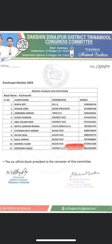 বালুরঘাট, ১৪ মার্চ––– পঞ্চায়েত নির্বাচনের আগে তৃণমূলের ইলেকশন কমিটি ঘিরে জোর বিতর্ক দক্ষিণ দিনাজপুর জেলায়। জেলা কমিটি ঘোষণা না হতেই একাধিক নেতার নামে পড়লো পদাধিকারী সিলমোহর। অবাক নেতা কর্মীরা প্রকাশ্যে ক্ষোভ উগড়ালেন সোশ্যাল মিডিয়ায়। আর যাকে ঘিরে প্রকাশ্যে এল শাসক দলের অন্দরের চাপা কোন্দল । উল্লেখ্য, পঞ্চায়েত নির্বাচনে দলকে শক্তিশালী করতে জেলার আটটি ব্লকেই ইলেকশন কমিটি তৈরী করেছে শাসক দল । মঙ্গলবার যে তালিকা প্রকাশ্যে আসতেই শুরু হয়েছে তুমুল বিতর্ক। ঘটনা নিয়ে কেউ কেউ যুব নেতাকে কাঠগড়ায় দাড় করিয়ে ক্ষোভ উগড়েছেন সোশ্যাল মিডিয়ায়। এদিকে ঘোষিত এই তালিকা থেকে বাদ পড়েছেন জেলার প্রথম শ্রেণীর একাধিক নেতৃত্ব। সহকারী সভাধিপতির নাম থাকলেও অজানা কারনে বাদ পড়ে গিয়েছে সভাধিপতি লিপিকা রায়ের নাম। বাদ গেছেন পূর্তকর্মাধ্যক্ষ থেকে শুরু করে জেলা মহিলা নেত্রীর নামও । তবে সেই তালিকায় একাধিক যুব নেতৃত্বর নাম নিয়েউ প্রশ্ন তুলে সরব হয়েছেন নেতা কর্মীরা। শুধু তাই নয়, রাজ্য থেকে জেলা কমিটি ঘোষণা না হতেই একাধিক নেতার নামের পাশে ভুয়ো পোস্ট লাগানো ঘিরেও উঠেছে বিতর্ক। যেখানে কুমারগঞ্জ ও কুশমন্ডির দুই যুব নেতার নামের পাশে সাধারণ সম্পাদক পদ লিখা হয়েছে। আর যাকে ঘিরেই জোর বিতর্কের মুখে পড়েছেন খোদ জেলা সভাপতি। পুরনো কমিটিতে তাদের নাম না থাকা এবং নতুন কমিটি ঘোষণা না হবার পরেও কিভাবে তাদের নামের পাশে সেই পদ দেওয়া হল? তা নিয়েই দলের অন্দরে প্রশ্নের মুখে পড়েছেন জেলা নেতৃত্বরা। তবে কি রাজ্যের অনুমতি ছাড়াই মিলছে নেতৃত্বদের পদ ? যে প্রশ্ন তুলেই সরব হয়েছেন জেলার একাধিক হেভিওয়েট তৃণমূল নেতৃত্বরা। অনেকে আবার এই ঘটনা নিয়ে যুব নেতাকে কাঠগড়ায় দাড় করিয়ে ক্ষোভ উগড়েছেন সোশ্যাল মিডিয়ায়।
