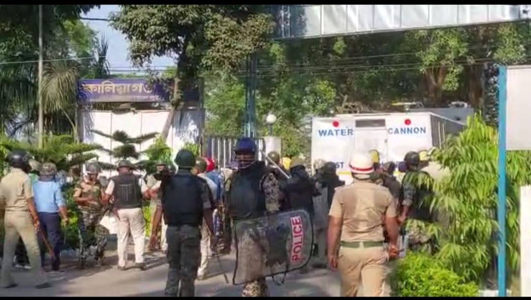 মঙ্গলবার দুপুরে কালিয়াগঞ্জ শহরের মনিবাগ প্রতিবাদ ক্লাবের মাঠ থেকে থানা ঘেরাও করবার উদ্দেশ্য নিয়ে কালিয়াগঞ্জ শহরের রায়গঞ্জ বালুরঘাট রাজ্য সড়কের পাশে থানায় ব্যাপক জমায়েত হয়। পরে বিক্ষোভকারীরা কালিয়া গঞ্জ থানার সামনে মিছিল নিয়ে হাজির হয়েই ব্যারিকেড ভেঙে থানার মধ্যে যাবার চেষ্টা করলে পুলিশ তাদের বাধা দেয়। কিনতু পুলিশের বাধা কোনভাবেই বিক্ষোভ কারীরা মানতে চায়না।এর পর পুলিশ প্রথমে লাঠিচার্জ করলে বিক্ষোভকারীরা ছত্রভঙ্গ হলেও পরবর্তীতে বিক্ষোভকারীরা প্রচুর সমর্থকদের থানার সামনে আনার পর থানার মধ্যে প্রবেশের জোর চেষ্টা করলে পুলিশ বাধ্য হযে কাদনে গ্যাস প্রয়োগ করে।কিন্তু তাতেও বিক্ষোভ কারীদের কোন ভাবেই দমানো যায়না।বিক্ষোভকারীরা রীতিমত পুলিশের দিকে ধেয়ে গিয়ে ইট পাটকেল ছুড়তে থাকে। পুলিশ কোন উপায় না দেখে নিরুপায় হয়ে হয়ে জল কামান প্রয়োগ করতে থাকে ।আদিবাসীদের ইটপাটকেল ছোড়ার ফলে বেশ কয়েকজন সাংবাদিকরা আহত হয় ঠিক তেমনি ভাবেই ৫থেকে ৬ জন পুলিশ আহত হয় বলে জানা যায়।কালিয়াগঞ্জ শহরে বিগত দিন রাজবংশী কামতাপুরি ও আদিবাসীদের এমন সংগঠিত বিক্ষোভ পুলিশের বিরুদ্ধে দেখেনি কালিয়াগঞ্জের মানুষ বলে জানা যায়। আজকের এই পরিস্থিতি এতটা অগ্নিগর্ভ হয়ে ওঠে যে বিক্ষোভকারীরা শেষ পর্যন্ত থানা আগুন লাগিয়ে দেয়। পুলিশ এবং বিক্ষোভকারীদের খন্ড যুদ্ধে একেবারে অগ্নিগর্ভ পরিস্থিতি তৈরি হয়। প্রচুর পুলিশ ও কম্বেট ফোর্স মোতায়েন থাকলেও বিক্ষোভকারীরা সেই ব্যারিগেট কে ভেঙে দিয়ে অগ্নিগর্ভ পরিস্থিতি তৈরি করে। এই ঘটনার জেরে চারিদিকে আতঙ্কের পরিবেশ তৈরি হয়েছে। শহরে প্রতিটি দোকান প্রায় বন্ধ। এই মুহূর্তে সারা শহর টহল দিচ্ছে জেলা পুলিশ সুপার সানা আক্তারের নেতৃত্বে পুলিশ বাহিনী।