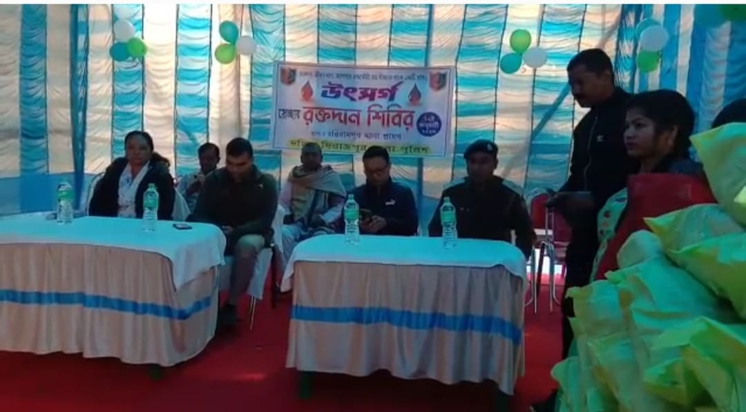 শীতল চক্রবর্তী হরিরামপুর দক্ষিণ দিনাজপুর ১২ ই জানুয়ারি :- স্বামী বিবেকানন্দের ১৬১তম জন্মদিন উপলক্ষে রক্তদান শিবিরের পাশাপাশি গরীব দুঃস্থ মানুষদের মধ্যে প্রায় ১০০ জনকে শীত বস্ত্র দান করলেন পুলিশ প্রশাসন। দক্ষিণ দিনাজপুর জেলার হরিরামপুর থানার পুলিশের উদ্যোগে জেলা পুলিশ সুপার রাহুলদের উপস্থিতিতে এদিন হরিরামপুর থানায় রক্তদান শিবিরের আয়োজন করা হয় যে রক্তদান শিবিরে পুলিশ কর্মী ও সেভিক ভলেন্টিয়াররা প্রায় ১০০ জন স্বেচ্ছায় রক্তদান করেন এদিন। পাশাপাশি এলাকার প্রায় ১০০ জন গরিব দুঃস্থ অসহায় মানুষদের শীতবস্ত্র বিতরণ করা হয় জেলা পুলিশ সুপার রাহুলদের হাত দিয়ে। এছাড়াও সেখানে উপস্থিত ছিলেন, অতিরিক্ত পুলিশ সুপার রাহুল দে, অতিরিক্ত জেলা পুলিশ সুপার গ্ৰামীন ডেনডুপ শেরপা, , থানার আইসি অভিষেক তালুকদার, হরিরামপুর থানার এ এস আই শুভঙ্কর চক্রবর্তী, হরিরামপুর ব্লকের ব্লকের বিডিও পবিত্র লামা, বিশিষ্ট সমাজসেবী, তথা হরিরামপুর ব্লক সভাপতি আব্দুল হাতেম আলী ,সহ হরিরামপুর থানার অন্যান্য আধিকারিকেরা উপস্থিত ছিলেন।