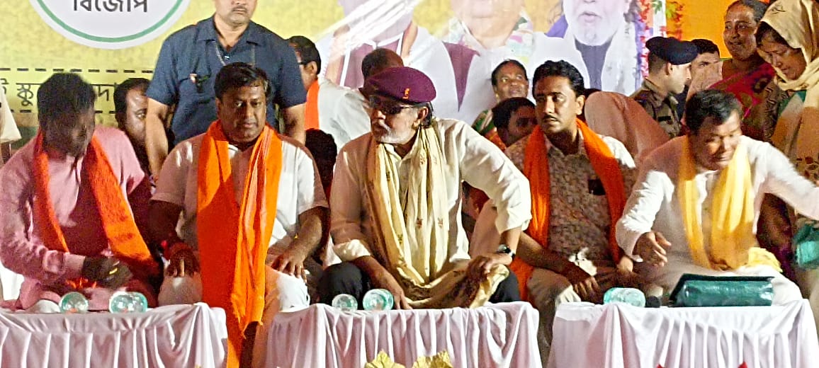 বালুরঘাট, ১৯ এপ্রিল —-— হেলিকপ্টার বিভ্রাটের জের! লাইট জ্বালিয়ে মিঠুনের সভা সারতে হল বিজেপিকে। শুক্রবার বিকেল তিনটে নাগাদ দক্ষিণ দিনাজপুর জেলার তপন হাই স্কুল মাঠে নির্বাচনী প্রচারে আসার কথা অভিনেতা মিঠুন চক্রবর্তীর। প্রত্যন্ত এলাকায় ওই বিখ্যাত অভিনেতাকে এক ঝলক চোখে দেখার জন্য এদিন দুপুর থেকে গ্রাম গ্রামাঞ্চলের বহু মানুষের ভিড়ও উপচে পড়েছিল। কিন্তু নির্দিষ্ট সময় অতিক্রান্তর দীর্ঘ সময় পরেও মিঠুনকে দেখতে না পেয়ে কার্যত ধৈর্যের বাঁধ ভাঙতে থাকে সাধারণ লোকজন সহ সভায় হাজির হওয়া নেতা কর্মীদেরও। যদিও পরবর্তীতে সন্ধ্যা ছটা নাগাদ বালুরঘাট কেন্দ্রের বিজেপি প্রার্থী সুকান্ত মজুমদারের হয়ে প্রচার মঞ্চে হাজির হয়েছিলেন মিঠুন চক্রবর্তী। আর যে কারনে সভা শুরু করবার আগেই এতটা সময় অপেক্ষা করাবার জন্য সকলের কাছে ক্ষমা চাইতেই শোনা যায় প্রার্থী সুকান্ত মজুমদারকে। একই সাথে তার মুখ থেকে উঠে আসে হেলিকপ্টার বিভ্রাটের বিষয়ও। যদিও এরপরেই ভিড়ে ঠাসা মাঠে বক্তব্য রাখতে ওঠেন অভিনেতা মিঠুন চক্রবর্তী । এদিন মঞ্চে উঠেই তিনি বলেন সকলেই ভোট দেবার আগে পাচ মিনিট ভেবে তারপরেই ভোট দেবেন। একইসাথে বালুরঘাট কেন্দ্রের বিজেপি প্রার্থী সুকান্ত মজুমদার কে কেন ভোট দেবেন তার ব্যাখ্যাও করেন তিনি। তবে আইনি জটিলতার কারণে এদিন বাংলা সিনেমার বেশকিছু ডায়লগ ঘুরিয়ে বলেছেন মিঠুন। যে ডায়লগ শুনেই হাততালি ও মোবাইলের লাইট জ্বালিয়ে মিঠুনকে স্বাগত জানিয়েছেন দুপুরের তীব্র দাবদাহ মাথায় নিয়ে অপেক্ষায় থাকা বাসিন্দারাও । তবে দেরিতে মঞ্চে ওঠায় সাধারণ মানুষের মন জয় করতে উৎসুক জনগনকে কিছু সময় ছবি তোলার সুযোগও করে দিয়েছেন মিঠুন চক্রবর্তী ।