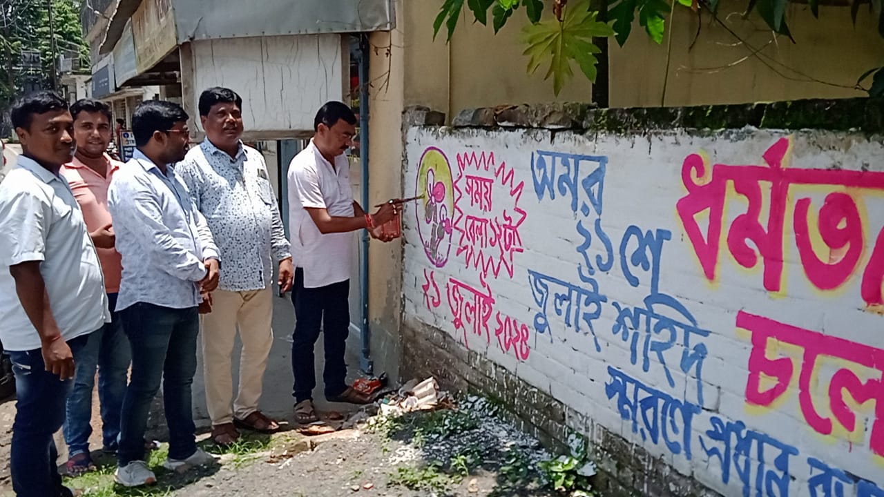 তপন,১৫ জুলাই :——–—————-২১ জুলাই কর্মসূচিকে সামনে রেখে এবার দেয়াল লিখন শুরু করল তপন ব্লক তৃণমূল কংগ্রেস।