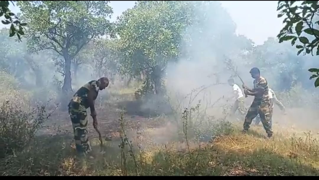 মালদা :———-–এই মুহূর্তে সবচেয়ে বড় খবর |আবারো ভয়াবহ আগুন হিজল ফরেস্টে ৷ভারত বাংলাদেশ সীমান্তের সিঙ্গাবাদ ও তিলাসন গ্রামের মাঝে অবস্থিত এই হিজল বোন ৷জানাযায় আজ সকাল ৮:৩০ মিনিটে নাগাদ আগুন লাগে এই হিজল ফরেস্টে ৷বেলা বাড়ার সাথে সাথে ভয়ংকর রূপ নেই এই হিজল ফরেস্টের আগুন |এইখানকার স্থানীয় এক বাসিন্দা প্রথমে আগুন দেখে অনুরাধাপুর বিএসএফ ক্যাম্পে খবর দেয় ৷তড়িঘড়ি করে ঘটনাস্থলে ছুটে যায় বিএসএফ 44 ব্যাটেলিয়ান অনুরাধাপুর ক্যাম্পের জোয়ানরা৷এই আগুন নিভাতে তড়িঘড়ি বিএসএফ 44 ব্যাটেলিয়ান অনুরাধাপুর ক্যাম্পের ডেল্টা কোম্পানি কমান্ডেন্ট মিথিলেশ কুমার এবং তার সাথীরা সাহায্যের হাত বাড়িয়ে দেন ৷ খবর দেওয়া হয় হবিপুর থানায় ৷ঘটনাস্থলে আসে একটি দমকল ইঞ্জিন |